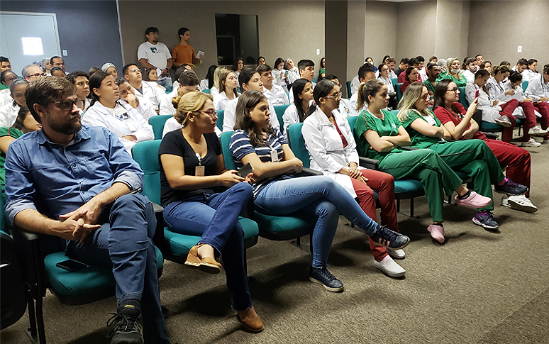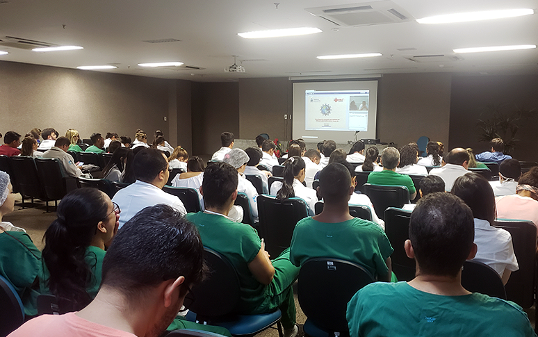 No Hospital Regional do Cariri (HRC), cerca de 100 profissionais assistiram à webconferência e tiveram a oportunidade de esclarecer dúvidas com os especialistas. A unidade do Governo do Ceará é referência no atendimento a casos suspeitos na região Sul do Estado.