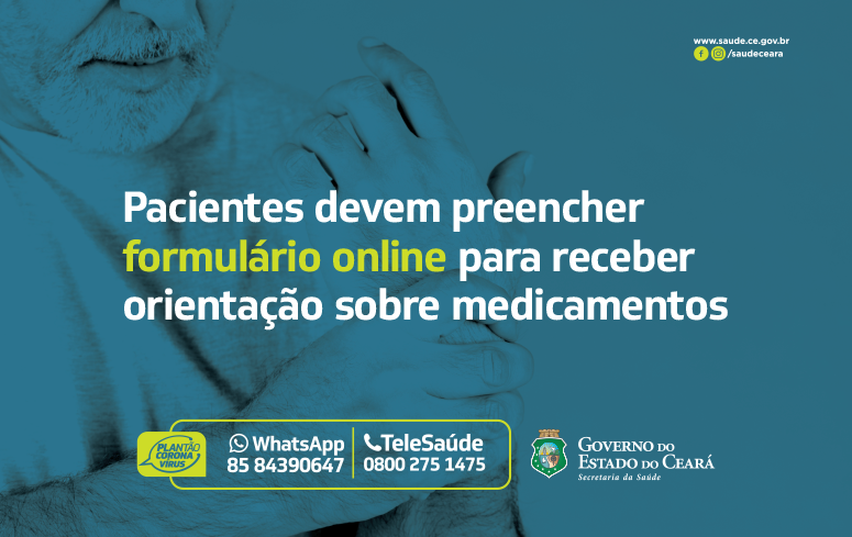 Para facilitar o acesso de pessoas com doenças reumáticas ao medicamento Difosfato de Cloroquina 250mg, a Secretaria da Saúde do Ceará (Sesa) oferece um canal de comunicação exclusivo para pacientes a partir desta quarta-feira, 6. Quem faz uso da medicação deve preencher o formulário disponível neste link.