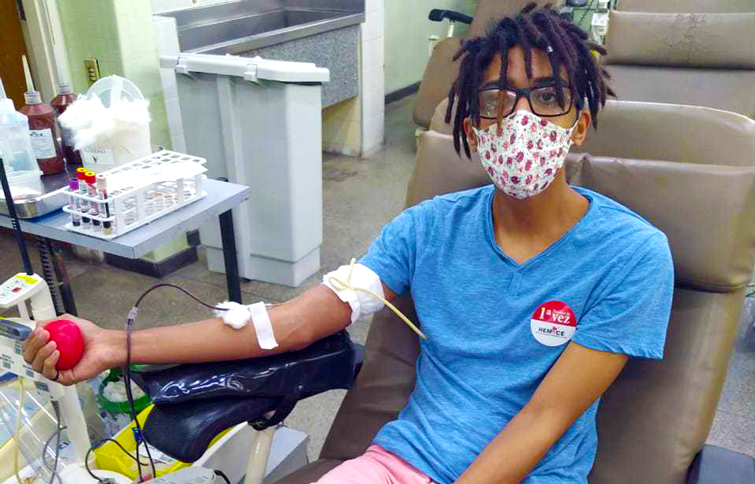 O estudante Guilherme da Costa, de 19 anos, doou sangue pela primeira vez em meio à pandemia