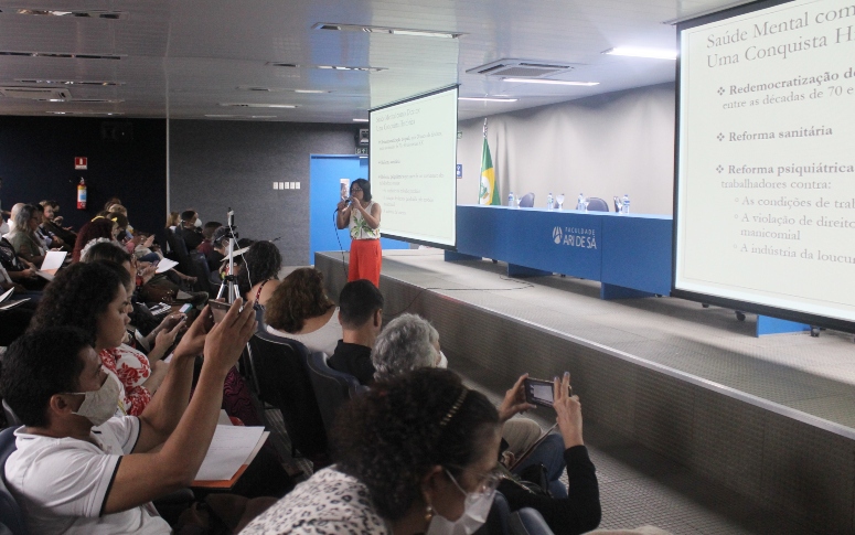Em sua explanação, ao contextualizar aspectos históricos, a especialista defendeu o cuidado em liberdade, a busca por avanços e a garantia de direitos voltados à atenção psicossocial do SUS.
