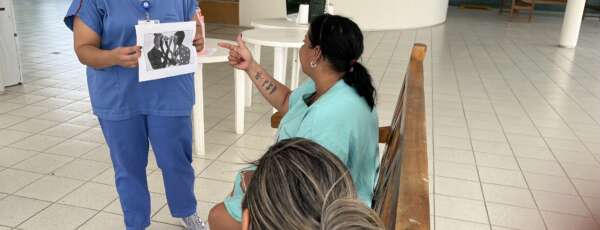 “Uma paciente da CCC estava prestes a receber alta e era cuidada por duas amigas da família, ou seja, voluntárias. Então, a irmã e a mãe da paciente decidiram participar dos treinamentos para aprender a cuidar em casa, após a alta. É muito importante que a pessoa que vai passar por essa experiência busque esse aprendizado constante. Para nós, é muito gratificante colaborar com esse momento”, relata Renata Gomes, analista de educação permanente da CCC, que atua nos treinamentos.