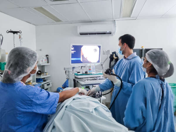 O profissional acrescenta que o aparelho radial é exclusivo para diagnóstico, enquanto o linear permite procedimentos terapêuticos, como biópsias e drenagens. “A combinação dos dois aparelhos aumenta a precisão diagnóstica e possibilita o treinamento formal em ecoendoscopia, fortalecendo o serviço do HGF e alcançando padrões de excelência nacional”, destaca.