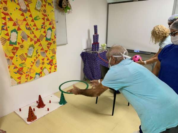 O jogo das argolas, atividade típica de brincadeiras do São João, foi ofertada aos pacientes acometidos por AVC