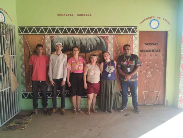 A agricultora, artesã e boleira Neta Ribeiro com a equipe da Copaf da Sesa (Foto: Aldeia Pitaguary)