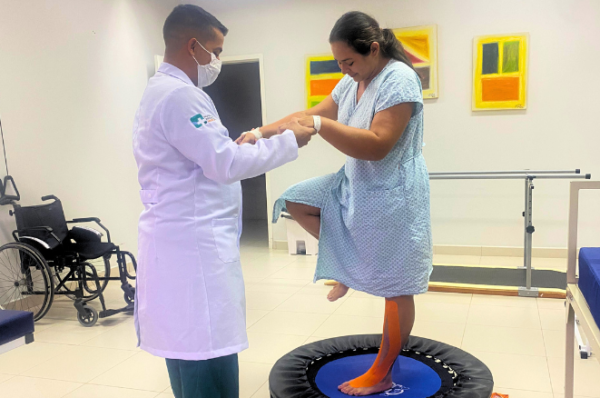 “No início era bem difícil fazer os exercícios no estado que eu me encontrava. Achei que nunca iria conseguir, mas com a persistência da equipe e força de vontade, estou conseguindo recuperar os movimentos da perna e do braço”, diz a paciente. Ela destaca, ainda, o acolhimento da equipe de fisioterapia: “Foram muito atenciosos comigo desde o começo. Isso fez toda diferença”.
