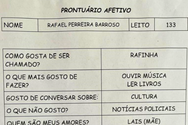 Para a enfermeira Isabelly Costa, o prontuário afetivo é uma oportunidade de promover um tratamento de acordo com a realidade vivida pelo paciente. “Conseguimos, por meio dessas informações do prontuário, trazer um pouquinho mais para a realidade do que ele vivia antes, dos gostos, percebemos que isso nos aproxima dele”, avalia.