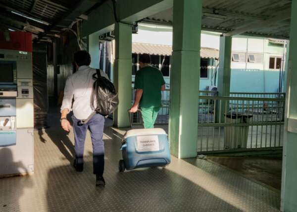Coração em transporte para realização de transplante (Foto: Jéssica Fortes/ Ascom HM)