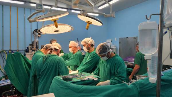 Equipe médica realizando procedimento de transplante de coração (Foto: Jéssica Fortes/ Ascom HM)