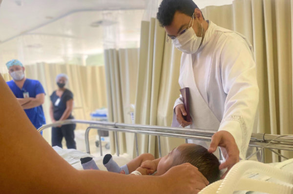 Hospital Regional Norte realiza desejo de família de paciente e viabiliza batizado de bebê internado