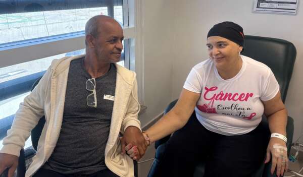 Cumprindo uma rotina intensa de consultas, exames e sessões de quimioterapia, Arimazelia vai ao HUC sempre acompanhada do marido, companheiro há mais de vinte anos. Ao lado do parceiro, de mãos dadas e com a fé carregada no pulso, por meio de um terço, ela encontra forças, aconchego e renova a esperança, olhando para o futuro com otimismo. “Esse apoio que recebo dele, vindo sempre comigo para o tratamento, estando ao meu lado, é tudo pra mim. É fonte de energia. Em casa eu tenho quatro filhos me esperando e eles também são meu combustível para dias melhores”, diz.