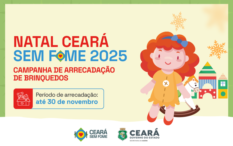 A Secretaria da Saúde do Ceará (Sesa) convida os trabalhadores do Nível Central e das unidades da Rede para participar da campanha de arrecadação de brinquedos Natal Ceará Sem Fome. A ação, organizada pelo Governo do Estado, por meio do Programa Ceará Sem Fome, é voltada para crianças em situação de vulnerabilidade.