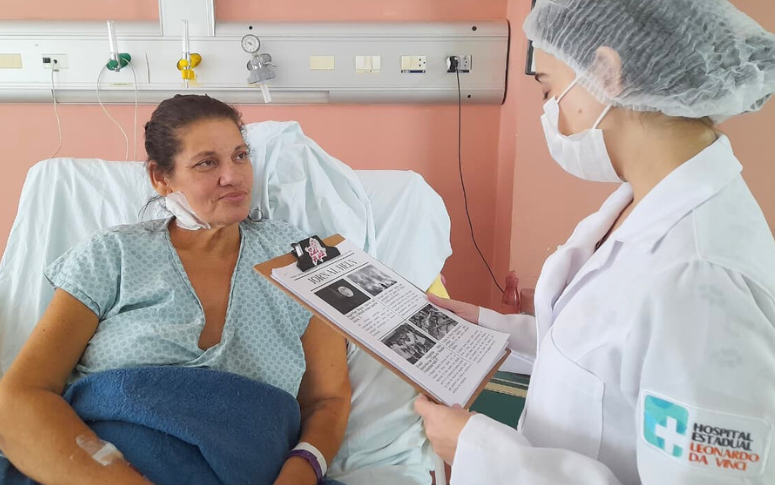 A paciente Rosane Ferreira dos Santos, internada na UTI 3, conta que a leitura trouxe momentos de leveza e distração durante o tratamento. “Eu gostava muito quando chegavam as notícias. A gente se distraía, esquecia um pouco o ambiente do hospital. Era bom saber o que estava acontecendo lá fora e até nas novelas”, relata.