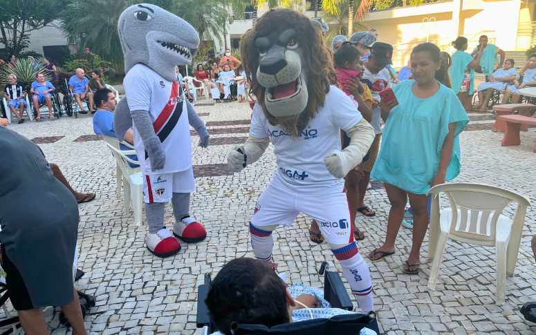Na última quarta-feira (26), os pacientes, cuidadores e funcionários foram contemplados com as visitas dos mascotes do Fortaleza Esporte Clube, Ceará Sporting Clube e Ferroviário Atlético Clube pela primeira vez. “Futebol é alegria. Trazendo os três mascotes buscamos trazer uma mensagem de união no esporte, sem violência. Além disso, temos pacientes que possuem times do coração, então é uma forma de eles aliviarem a saudade do estádio”, explica a terapeuta ocupacional do CCC Gardênia Leão.