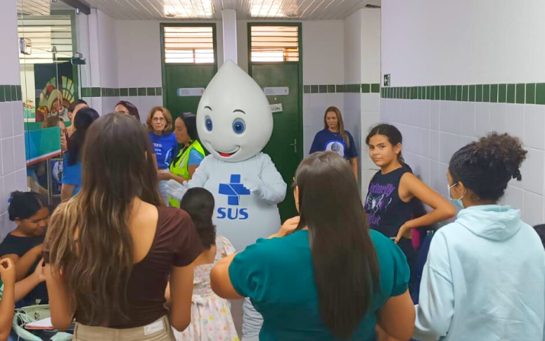 Zé Gotinha distribuiu simpatia e fomentou a busca por informações sobre vacinas, na programação desta sexta (28)