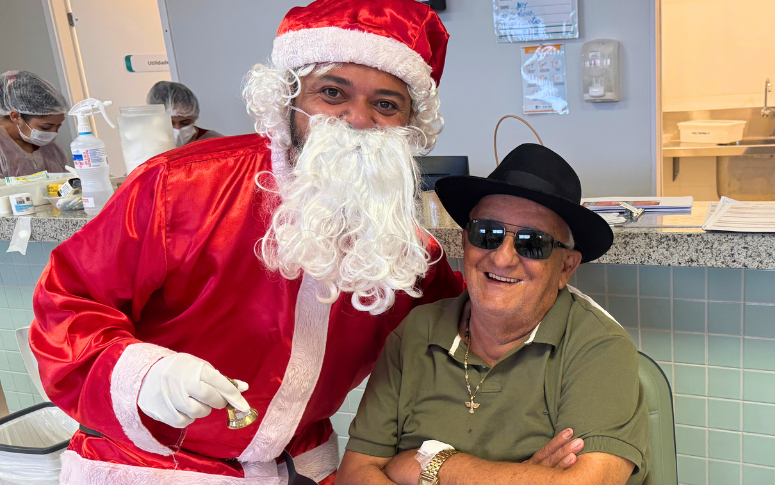 O engenheiro de segurança do trabalho do HRVJ, Carlos Henrique de Castro, interpretou o Papai Noel e disse que foi emocionante contribuir com a ação. “Eu sei na pele o que sentem aqueles pacientes e acompanhantes, tanto que fiquei emocionado ao lembrar da minha mãe, que é acometida da mesma doença e que, atualmente, estamos na mesma luta pela busca de dar uma melhor qualidade de vida a ela”, ressalta.