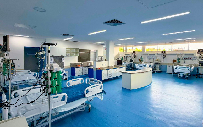 A UTI do Hospital São José também foi inteiramente renovada. O espaço recebeu reforma completa, do piso ao teto, com pintura, cobertura em gesso, painéis e instalação de camas hospitalares elétricas e colchões novos. A unidade conta com oito leitos, sendo três deles de isolamento respiratório. As melhorias ampliam a segurança assistencial e o conforto dos pacientes e das equipes.