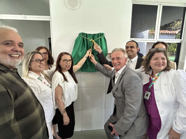 Autoridades realizam o descerramento da placa que marca a apresentação da modernização do parque tecnológico do Serviço de Doenças Onco-Hematológicas