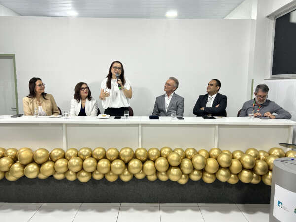 Mesa de honra da solenidade com fala da secretária da Saúde do Ceará, Tânia Mara Coelho