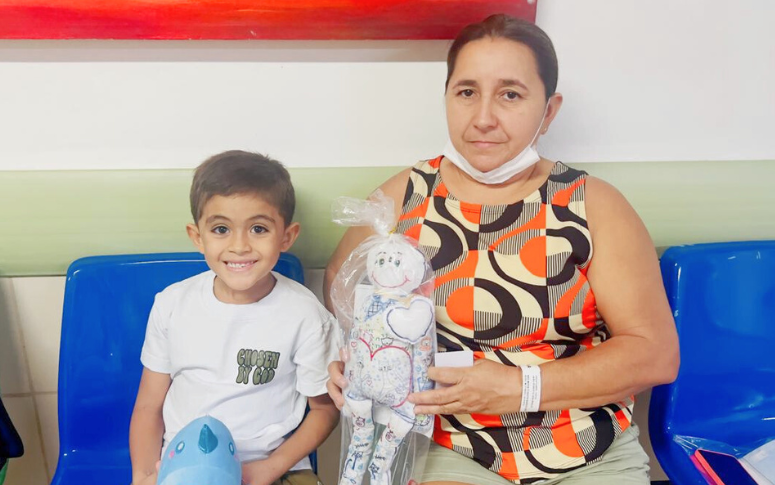 Crianças internadas no HGWA receberam os bonecos de voluntários no momento da alta hospitalar, transformando o cuidado em afeto e acolhimento