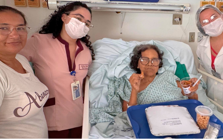 Momento de cuidado e acolhimento: paciente internada no HGWA tem desejo alimentar atendido pela equipe multiprofissional