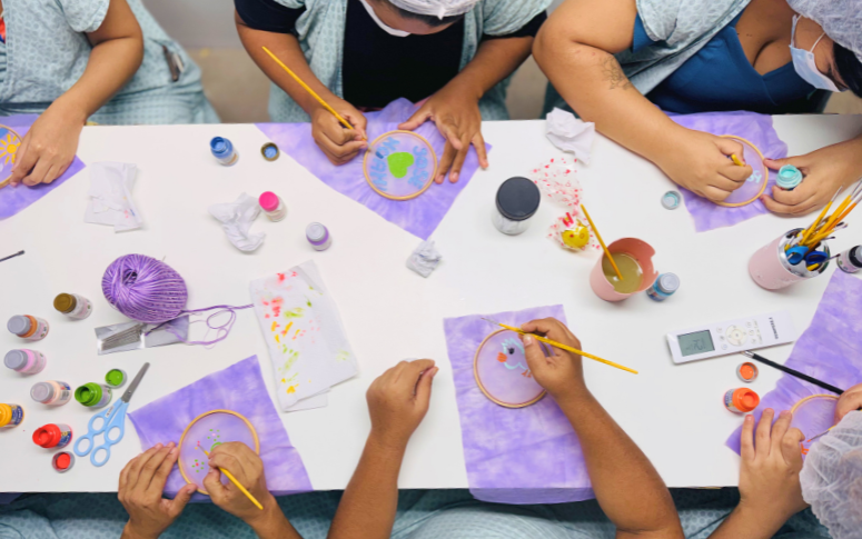 Momentos de leveza em meio à tensão da UTI: as oficinas ajudam a reduzir a ansiedade e promovem socialização entre as acompanhantes
